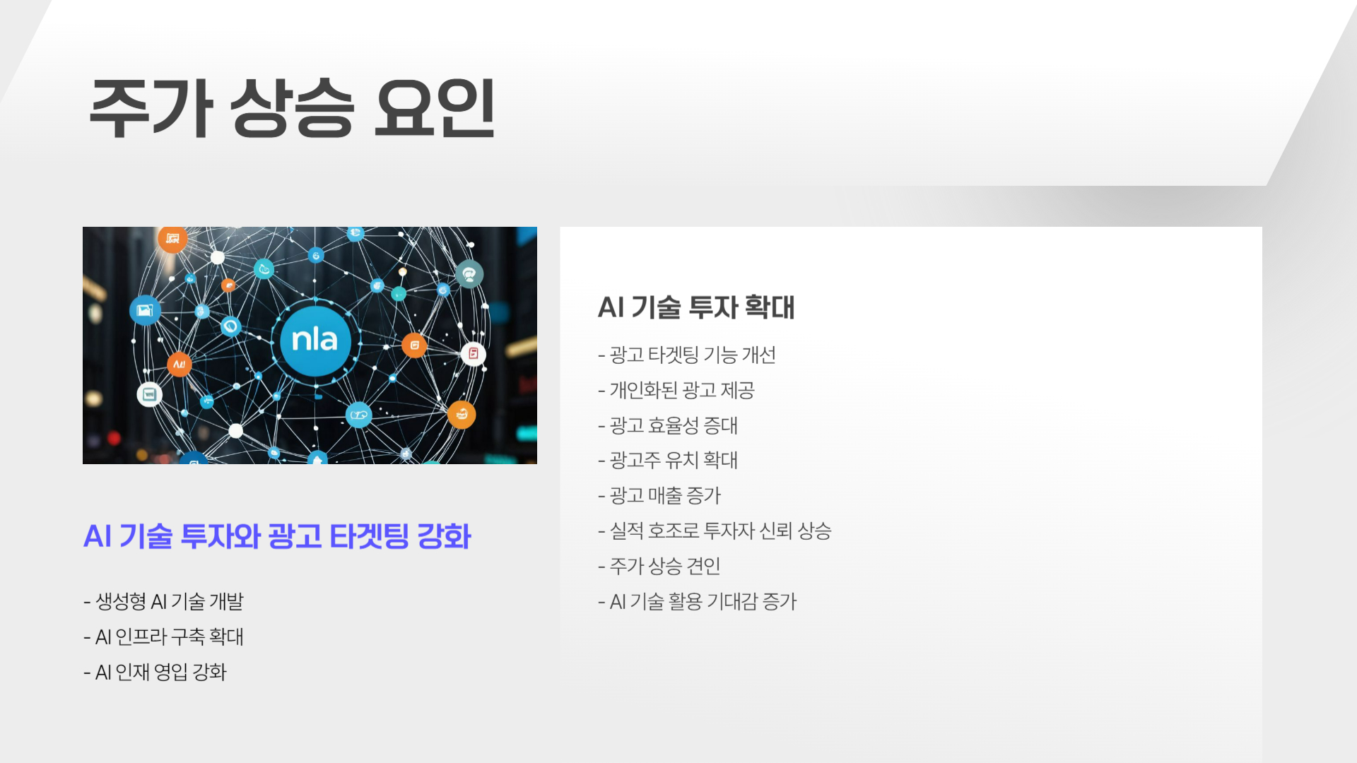 ๋ฉํ์ ๊ฐ๋ ฅํ AI ํฌ์, ๋ฐ๋์ฒด ๊ฐ๋ฐ, ๊ด๊ณ ์ฌ์ ์ฑ์ฅ ๋ฑ์ ์ฅ๊ธฐ์ ์ธ ํธ์ฌ๋ก ์์ฉํ ๊ฐ๋ฅ์ฑ์ด ๋์ต๋๋ค. ๊ทธ๋ฌ๋ ๋ค์๊ณผ ๊ฐ์ ์์๋ค์ ๋ณ๋์ฑ์ ์ด๋ํ ์ ์์ต๋๋ค.