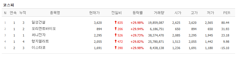 | ์ข ๋ชฉ๋ช | ํ์ฌ๊ฐ | ์ ์ผ๋น | ๋ฑ๋ฝ๋ฅ | per |