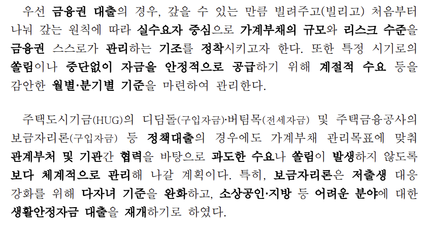 - ๊ธ๋ฆฌ ์ธํ๋ก ์ธํด ๊ฐ๊ณ๋ถ์ฑ ์ฆ๊ฐ๊ฐ ์์๋จ์ ๋ฐ๋ผ ์ด๋ฅผ ์ฌ์ ์ ๋ฐฉ์งํ๊ธฐ ์ํ ์กฐ์น