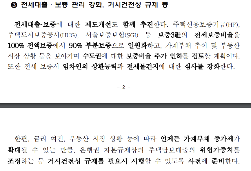 - ์ ์ธ๋ณด์ฆ๋น์จ 100% → 90%๋ก ์กฐ์ (HF, HUG, SGI ๋ณด์ฆ)