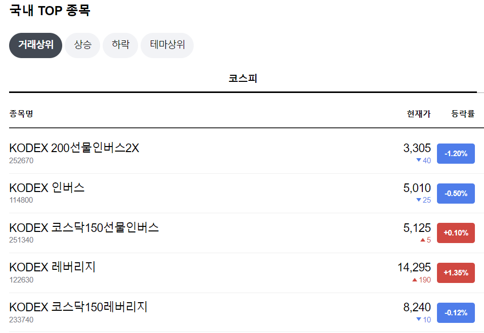 μλ νλ 2022λ 7μ 15μΌ κ±°λλ μμ μ’ λͺ©μ λνλ΄κ³ μλ€. 곡κ΅λ‘κ²λ ETF μ’ λͺ©λ€μ΄ κ±°λλ μμμ μλ κ²μ λ³Ό μ μλ€. μλ κ±°λλμμ λ³Ό μ μλ κ²μ ν¬μμλ€μ΄ νλ½μ₯μ μμΈ‘νλ κ²μΌλ‘ λ³Ό μ μλ€. μμ μ’ λͺ©λ€μ κ°λ¨ν μ€λͺ νλ©΄ μλμ κ°λ€.